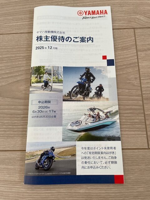 【7272】ヤマハ発動機から株主優待が届きましたので紹介します♩
